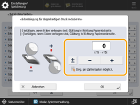 Dieser Modus kann sich auf den Papiereinzug auswirken. Es wird empfohlen, die Werte in kleinen Schritten anzupassen, da eine Anpassung im großen Schritten zu Papierstaus führen kann. Wenn beim beidseitigen Druck eine Ecke gefaltet wird, können falsche Wellungskorrektureinstellungen bei der ersten Seite des beidseitigen Drucks zu einem Papierstau führen. |