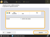 Si selecciona <Sí> para <Mostrar pantalla de confirmación al rellamar> y <Iniciar recuperación (la operación se iniciará al pulsar el botón)>, la impresión se iniciará cuando seleccione <Sí> en la pantalla de confirmación.