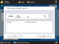 Si <Iniciar recuperación (la operación se iniciará al pulsar el botón)> está desactivado <No>, aparecerá la pantalla de configuración al pulsar <Sí>. Así podrá cambiar las opciones antes de pulsar <Iniciar impresión> para empezar.