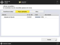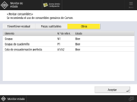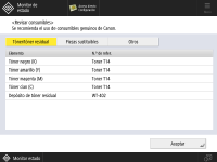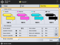 (Monitor estado), se muestra la pantalla Monitor estado, donde se pueden revisar el nivel de tóner u otras indicaciones de estado.