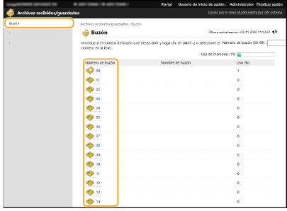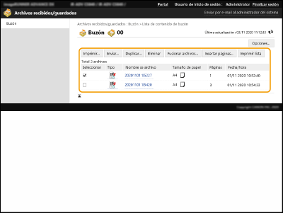 ![]() | Puede utilizar la IU remota para imprimir o eliminar archivos almacenados en el Buzón de correo. |