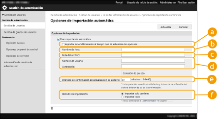 Puede actualizar automáticamente los datos de usuario importando periódicamente archivos almacenados en una ubicación previamente especificada.