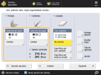 Tamaño de acabado | Tamaño del documento principal | Tamaño de la página de portada |