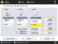 seleccione <Recorte vertical> o <Recorte en 3 bordes> e introduzca el tamaño de acabado deseado