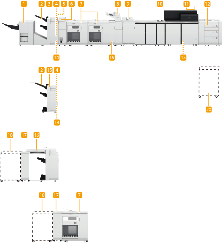 利用“大容量堆叠器-J”,可以连续堆叠大量纸张。本机最多可安装两个堆叠器。有关详细信息,请参阅“大容量堆叠器-J”的手册。