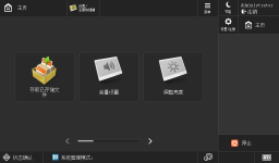时,显示<主页>屏幕。<主页>屏幕显示功能按钮列表并用作各种功能的入口。<主菜单>屏幕中显示的项目