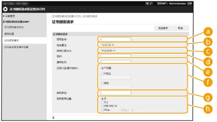 [质询密码:]在SCEP服务器端设置密码时,请输入请求数据 (PKCS#9) 中包含的质询密码,以请求颁发证书。