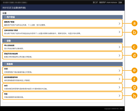 使您可以备份存储在服务器机器上的同步数据。可以选择[设备]或[网络]作为存储备份数据的接收方。