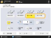 只有安装了分页装订处理器和“大容量堆叠器-J”时,才会显示此屏幕。如果未显示此屏幕,请继续执行下一步。