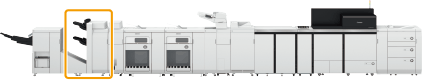 下图指示“分页装订处理器-AF”或“鞍式分页装订处理器-AF”的位置。