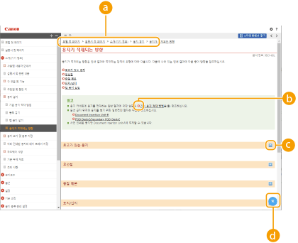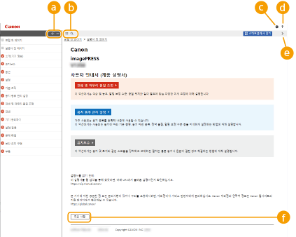 클릭하면 사용자 안내서 보는 법, 검색을 수행하는 방법 및 기타 정보가 표시됩니다.