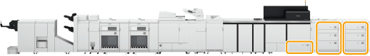 용지 데크와 용지 급지용 각 옵션 장치는 다음 그림에 나와 있습니다.