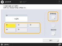 자주 사용하는 프리 사이즈 용지를 최대 5개까지 등록할 수 있습니다. 여기에 등록된 용지 크기는 용지 데크에 대한 용지 크기 선택 화면에 표시됩니다.