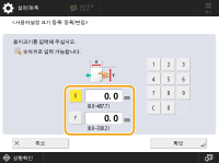 <X> 면과 <Y> 면의 길이를 지정합니다. <X> 또는 <Y>를 눌러서 숫자 키를 사용하여 양쪽의 길이를 입력합니다.