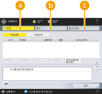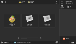 시작 또는 기본 설정으로 복원했을 때 <상황확인> 화면이 표시됩니다. 시작 또는 복원 시 표시되는 화면을 변경하려면 <기동/복구후 표시화면>을 참조하십시오. |