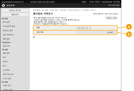 3 | [찾아보기...]을 클릭하고 가져오기할 설정 데이터를 지정하십시오. |