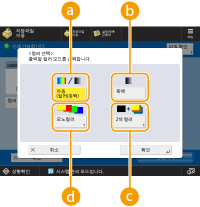 <모노컬러>지정한 색상으로만 인쇄됩니다. <레드>, <그린>, <블루>, <옐로우>, <마젠타> 또는 <시안>을 선택합니다.
