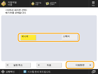 출력 위치를 선택하고 <다음화면>을 누릅니다.