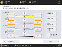 <농도 미세조정>색상을 선택하고 <-> 또는 <+> 버튼을 사용하여 농도 영역별 농도 레벨을 조정합니다. 조정이 완료되면 <확인>을 누릅니다.