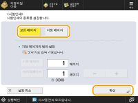 <모든 페이지>를 선택하면 기기의 카운터가 샘플 세트를 인쇄물로 계산합니다.