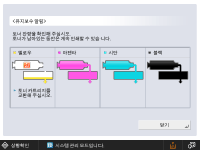 <토너 잔량 경고 표시>를 <설정>으로 설정하면, 다른 색 토너가 부족해질 때 경고 화면이 다시 나타납니다. |