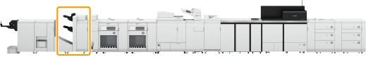 다음 그림에는 "Staple Finisher-AF" 또는 "Booklet Finisher-AF"의 위치가 나와 있습니다.