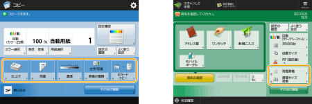 コピー、ファクス、スキャンの基本画面に表示されている設定ボタンを、他の設定ボタンに変更することができます。また、ログインしているユーザーによって異なる基本画面を表示させることもできます。
