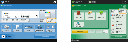 コピー、ファクス、スキャンなどで、同じ組み合わせの設定を使うことが多い場合は、<よく使う設定>として登録しておくと便利です。
