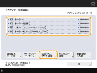 (カウンター/機器情報)を押す