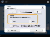 | | 原稿全体の濃度を調整します。たとえば、コピー濃度を濃くすることで、鉛筆で書かれた薄い文字を読みやすくします。 |