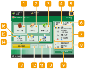 <スキャンして送信>(<ホーム>画面)を押すと、スキャンの基本画面が表示されます。