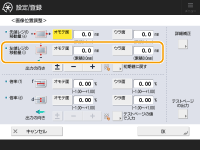 <OK>を押して画面を閉じた後に再び開くと、画面上の数値は「0」に戻っていますが、入力した調整値は「累積」の欄に保持されます。調整を繰り返す場合は、新たに出力したテストページ上で「i」の長さを確認し、調整値を算出して入力してください。 |