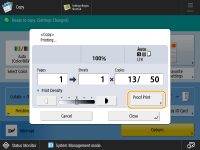 Press <Proof Print> on the pop-up screen that appears while the machine is copying.