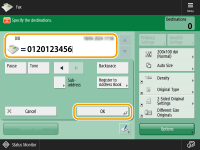 You can press <Register to Address Book> to register the entered destination. Set the required conditions, and specify <Name> and <Address Book>. For information on the settings, see