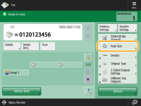 To check the total number of specified destinationsThe total number of specified destinations is displayed on the top right of the screen. This enables you to confirm that the number of destinations is correct before sending. To send with the sender informationTo check the statuses for sent documentsWhen <Display Notification When Job Is Accepted> is set to <On>, the <Status Monitor> screen can be displayed from the following screen that is shown after a send job is received. <Display Notification When Job Is Accepted>To print the report for the results of sendingOn the Fax Basic Features screen, pressing <Options>  <TX Report> enables you to set to automatically print the report listing the results of sending. To set this for each job from <Options>, it is necessary to select <For Error Only> or <Off> in <TX Report>, and then set <Allow Printing from Options> to <On>. Detect Feeder Multi Sheet Fd. When multiple sheets are fedScanning is stopped and the message is displayed on the screen. Follow the instructions to clear the jam. When you have cleared the jam, the resume job screen is displayed. If the machine mistakenly detects multiple sheet feeding, press <Do Not Detect Multi. Sheet Feed> to resume scanning. To set the machine in advance to not notify you of multiple sheet feeding, perform one of the following operations. Each time you send, press <Options> on the Fax Basic Features screen  select <Detect Feeder Multi Sheet Fd.> to disable the setting. When photos in the sent image are too dark or light colors in the background of color originals cannot be removedThe quality of the sent image may be able to be improved if the following conditions/settings are met. Job type: Fax (Memory Sending) or Scan and Send (Fax/I-fax) <Select Color>: <Black & White> (Scan and Send) <Original Type>: <Text> <Density>  <Background Density>: <Auto> <Resolution>: 200 dpi x 400 dpi, 300 dpi x 300 dpi*, 400 dpi x 400 dpi, or 600 dpi x 600 dpi* *Can be set for Scan and Send |