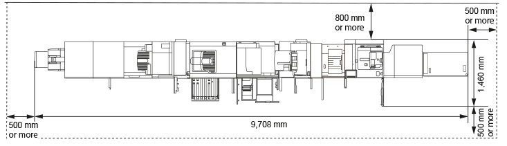 High Capacity Stacker-J | 899 mm x 745 mm (1,250 mm*) x 1,141 mm (To the top of the top tray) * When the eject tray is moved out of the stacker. | Approx. 120 kg |