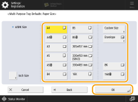 2 | Select the type of envelopes. ![]() To register a custom size envelope, press <Custom> <Next> and press <X> or <Y> to specify the side, then use the numeric keys to enter the length of the specified side. |