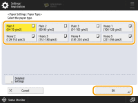 If the paper type of the paper that you have loaded is not listed on the detailed setting screen, you can register it in the paper type list.