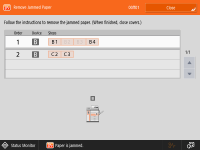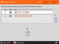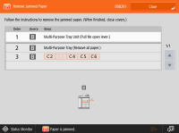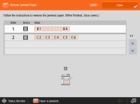 Check the paper jam location on the screen, and see the procedure according to the paper jam location (image).