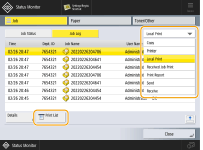 If "NG" appears in the "RESULT" column in the printed list, check the three-digit number preceded by "#"to find the reason and solutions. If (Settings/Registration) <Management Settings> <Device Management> <Restrict Access to Other User Jobs> is set to <On>, jobs other than those of the logged-in user are displayed as "***" and cannot be operated. If you log in with administrator privileges, the jobs of all users are displayed. |