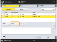 You can cancel copying while scanning originals or cancel waiting copy jobs.