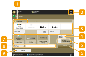 When you press <Scan and Store> on the <Home> screen, and select the Mail box to scan originals, the following setting screen is displayed.
