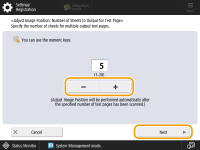 We recommend using a single paper deck for jobs with automatic adjustment. When you perform the procedure for automatic adjustment of the image position with the custom paper type, the adjustment settings are saved after the job is printed. |