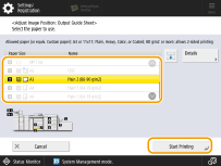 Select the paper source that contains the paper type to adjust, and press <Start Printing>.