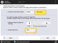 If you need to adjust the image position more precisely after adjusting it using the guide sheet, select <Do Not Use Scanner> and make necessary adjustments for individual adjustment setting items.