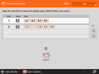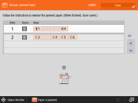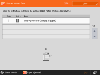 Check the paper jam location on the screen, and see the procedure according to the paper jam location (image).