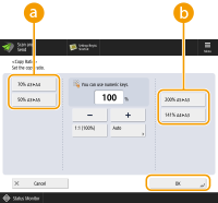 | | You can enlarge or reduce by specifying magnification (%). Enlarging or Reducing by Specifying Magnification |