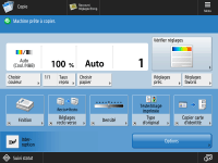 Appuyez sur affiché sur l'écran <Accueil> et sur l'écran des fonctions de base pour personnaliser l'écran, par exemple en réorganisant les boutons ou en créant une touche de raccourci. Personnalisation de l'afficheur tactile![]() Vous pouvez modifier les paramètres d'affichage, notamment en définissant l'écran qui doit apparaître lorsque l'appareil est mis sous tension ou en indiquant si le message de niveau de papier ou de toner doit apparaître. <Réglages d'affichage> Vous pouvez définir l'écran qui doit s'afficher au-delà d'un certain délai d'inactivité. <Fonction après réinit. auto> |
