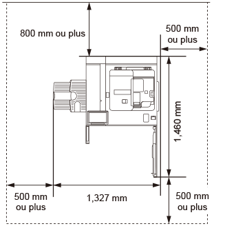 Charge de résistance au sol | Vérifiez les spécifications de la charge de résistance du sol auprès de l'entrepreneur du bâtiment dans lequel la machine doit être installée. | ||