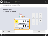 Spécifiez la longueur du côté <X> et celle du côté <Y>. Appuyez sur <X> ou <Y> pour saisir la longueur de chaque côté avec le clavier numérique.